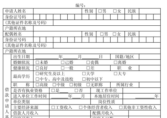 个人住房贷款申请表