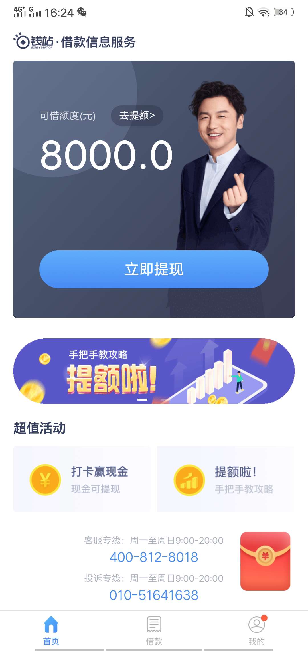 钱站之前没额度,刚从新填资料,有额度了,不知道