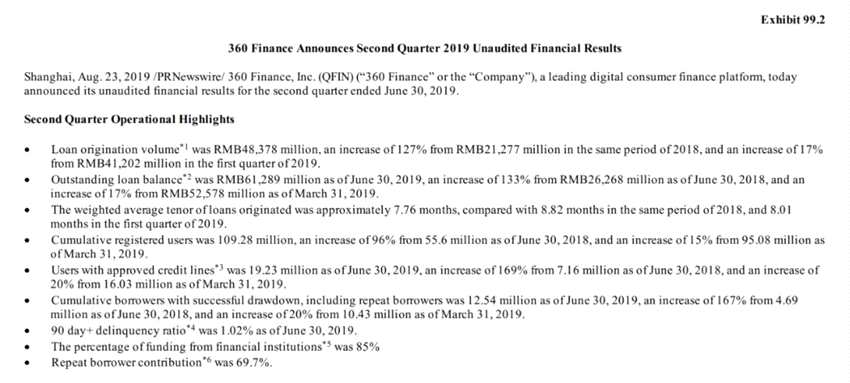 360金融2019年Q2财报:净赚6.18亿,复贷率69.