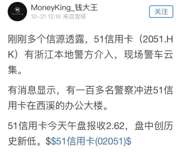 大事件!51信用卡遭调查,警察冲进大楼!股价闪崩