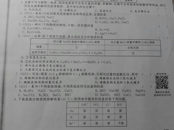 化学 初三 如图 单选3~9题 求正解!急要在线等,
