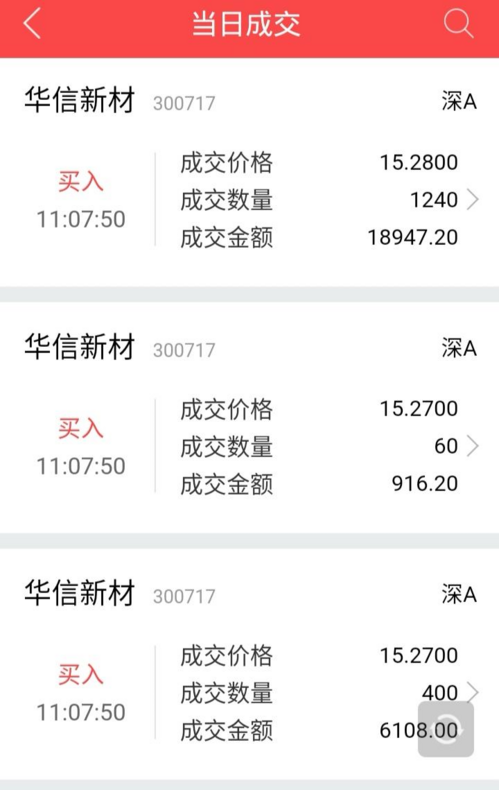 龙老佛:15.27不断买入华信新材。手机截图不做