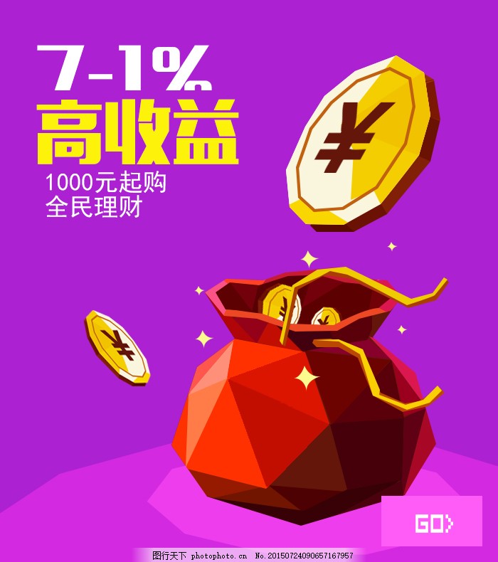 钱袋金融理财硬币紫色梦幻淘宝促销素材扁平