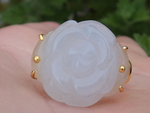 新款女戒天然翡翠老坑A料18K金玫瑰花玉戒指