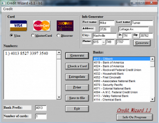 美国信用卡号码生成器(Credit Wizard)1.1 绿色