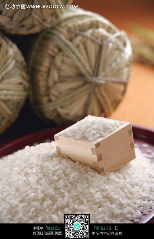 一堆白米和方形的舀米的器物图片(编号:96505