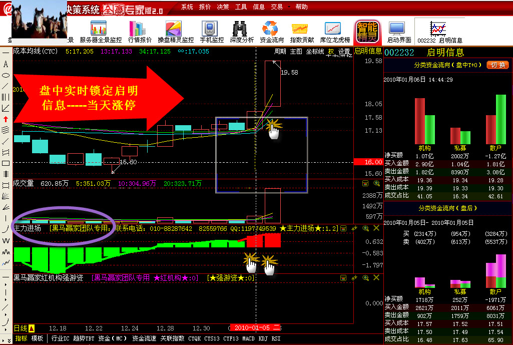 黑马赢家 主力进场指标再抓002232启明信息涨
