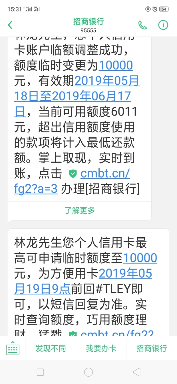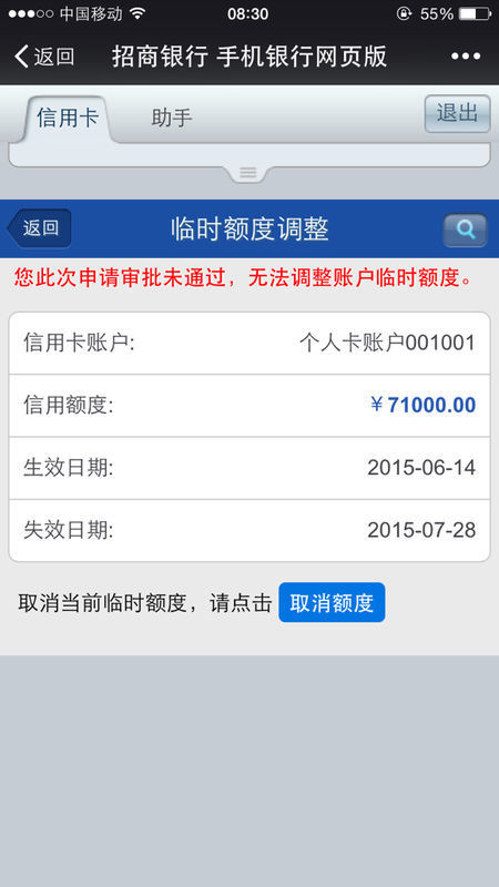 招商银行信用卡临时额度