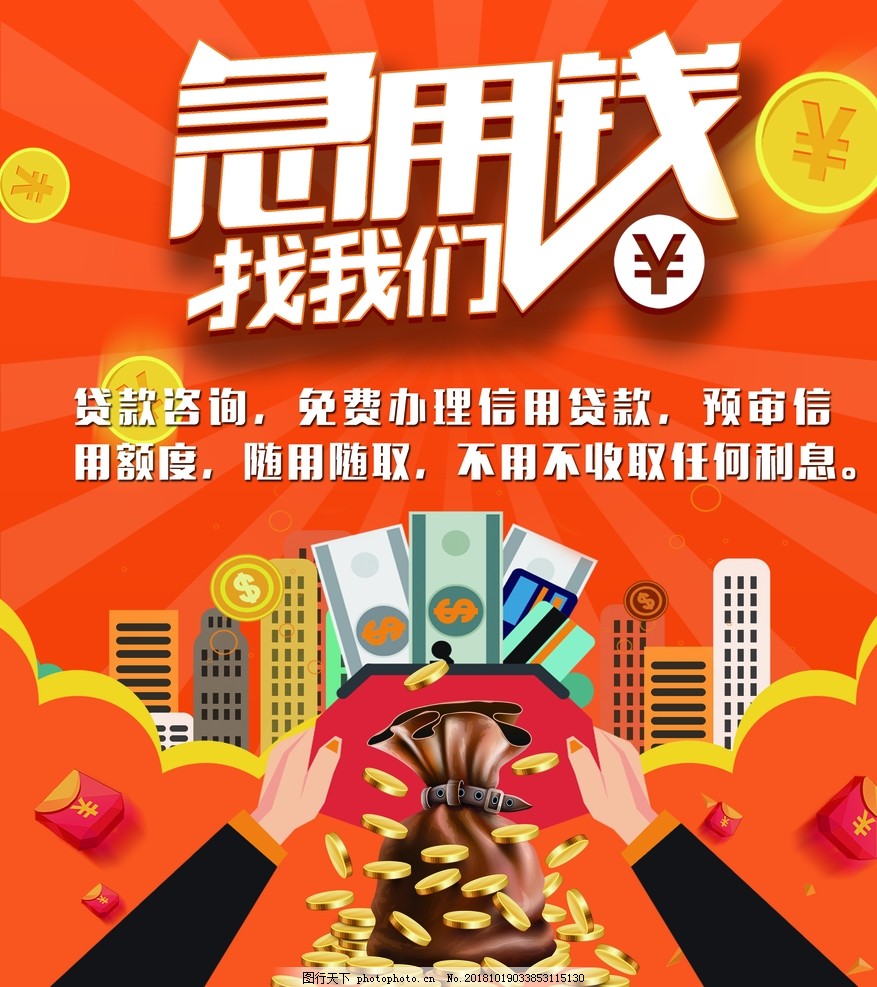 2017急用钱找我们海报设计急用钱我们更方便海报设计金融公司海报用矢量图免费下载_psd格式_650像素_编号33354805
