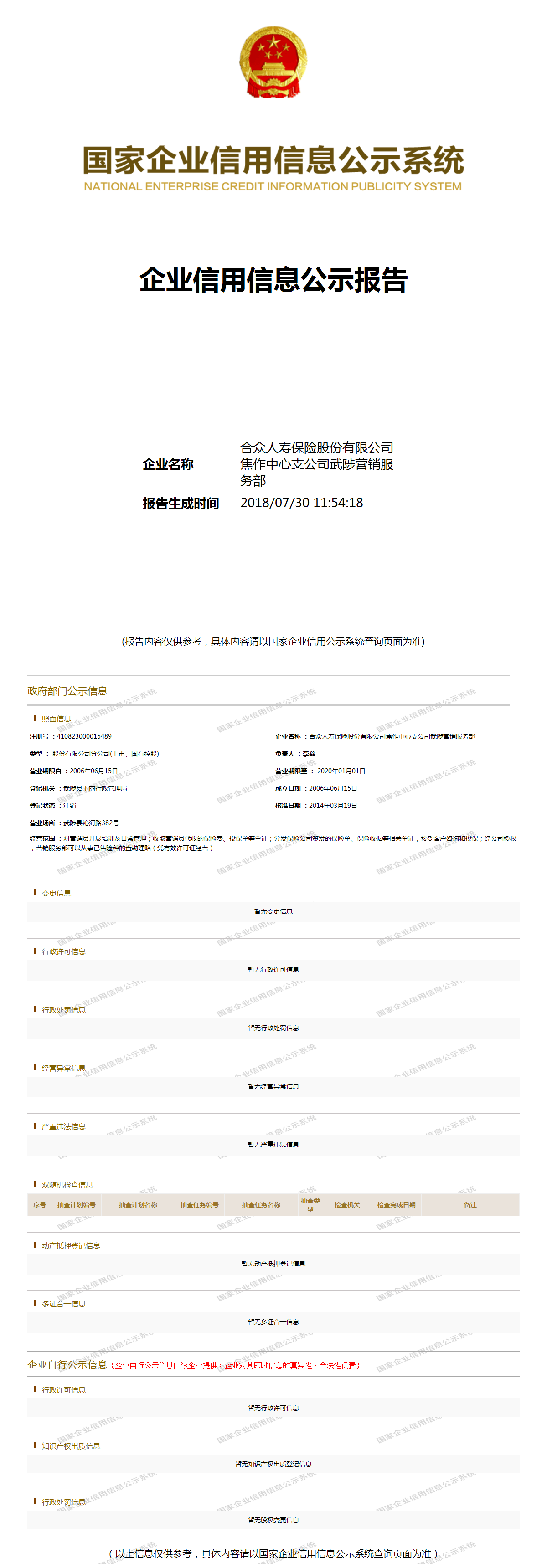 合众人寿保险股份有限公司焦作中心支公司武陟