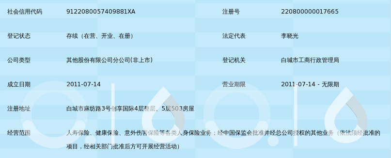 合众人寿保险股份有限公司白城中心支公司