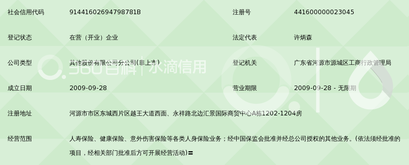 合众人寿保险股份有限公司河源中心支公司