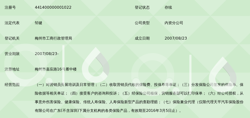 合众人寿保险股份有限公司梅州中心支公司