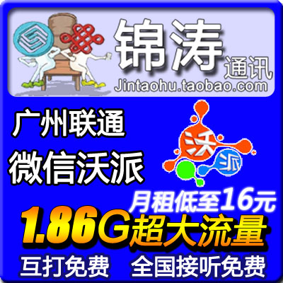 广州联通3G手机卡 沃派36元套餐 微信沃号码卡