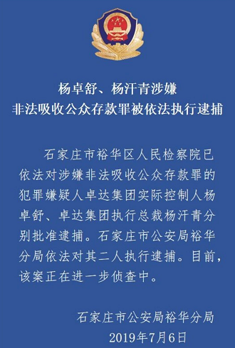 卓达集团杨卓舒、杨汗青涉嫌非法吸收公众存款
