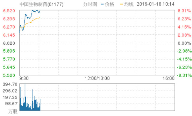 中国生物制药涨逾8% 旗下抗肿瘤药获药品注册