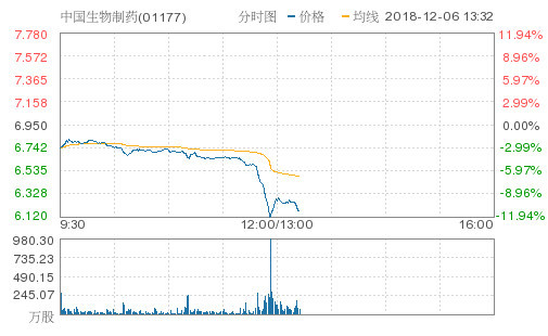 中国生物制药急跌逾10% 旗下药物或受带量采