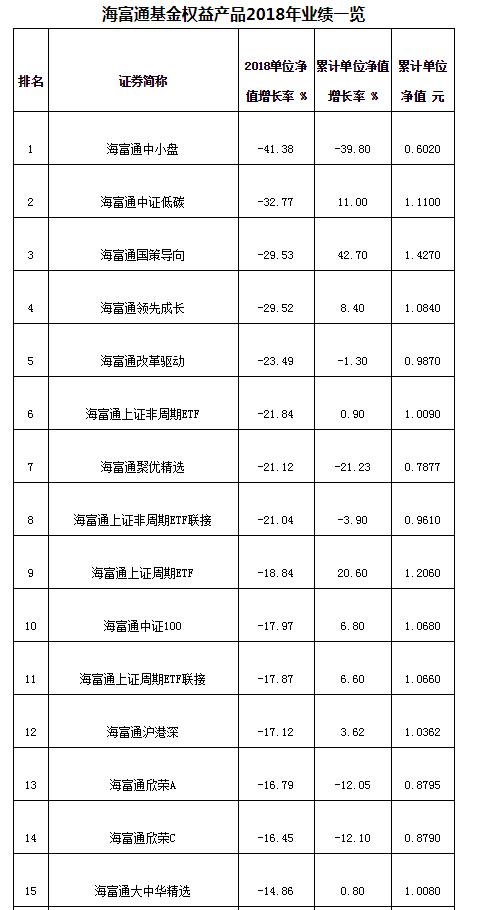 海富通去年8只权益下跌超20% 中小盘主题净值