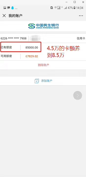 民生信用卡固定额度提高到8.5万,养出17万的乐