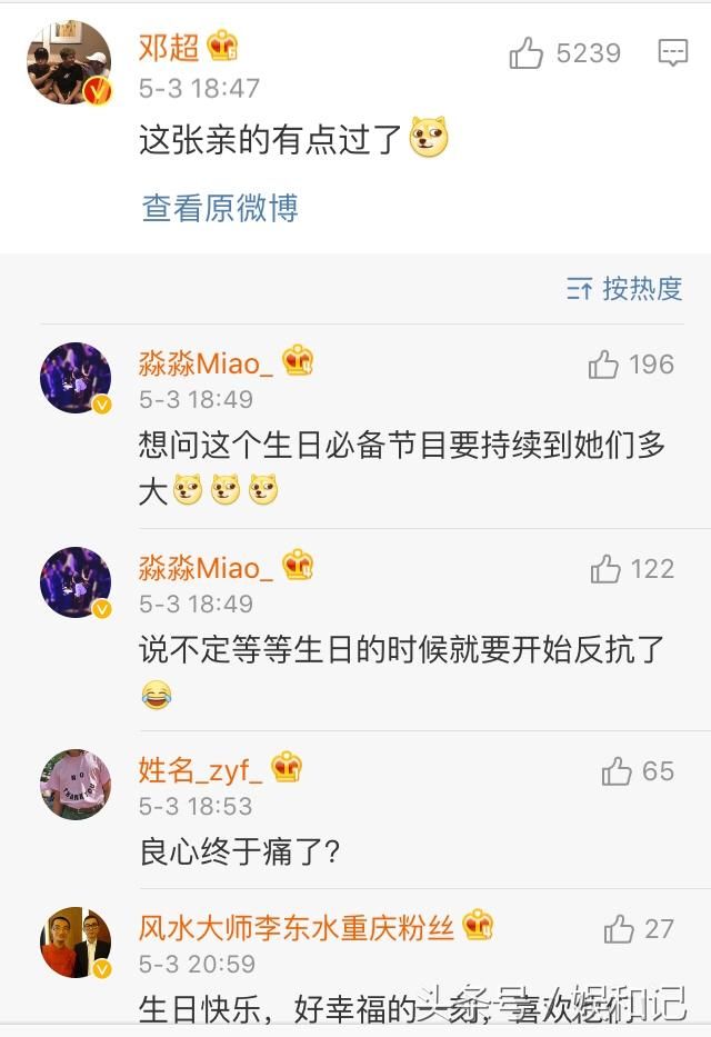 孙俪晒小花生日脸被挤变形照,邓超6个字评论,
