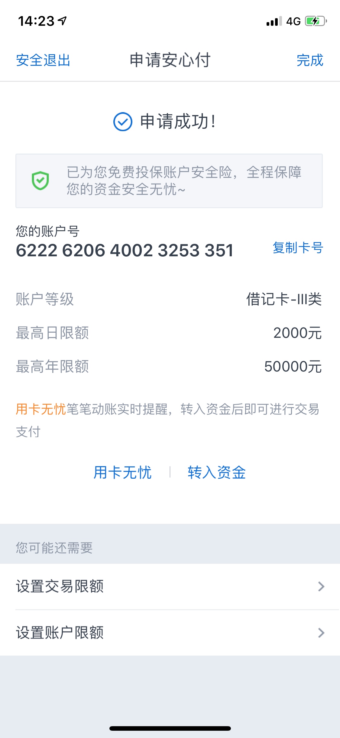交通羊毛跟风成功 不用交行银行卡,开通安心付