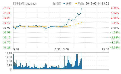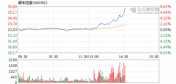顺丰控股午后异动拉升5.18%报34.74元 成交2