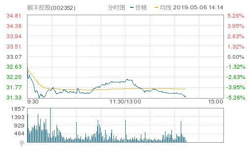 顺丰控股午后异动大跌5.08%报31.39元 成交2