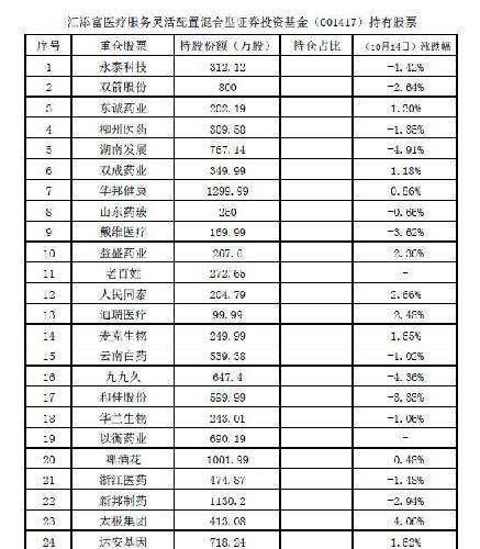 001417医疗服务基金最新重仓持有股票,详见下