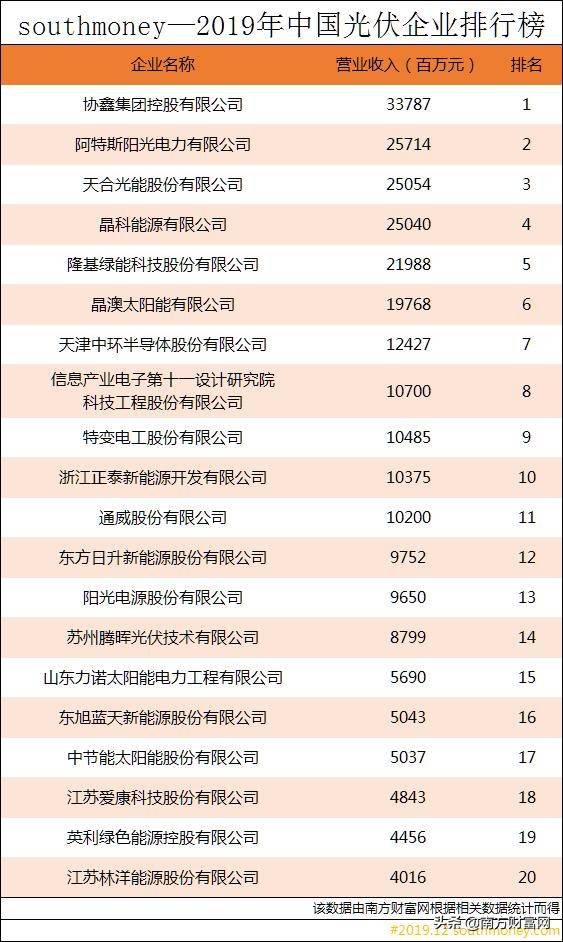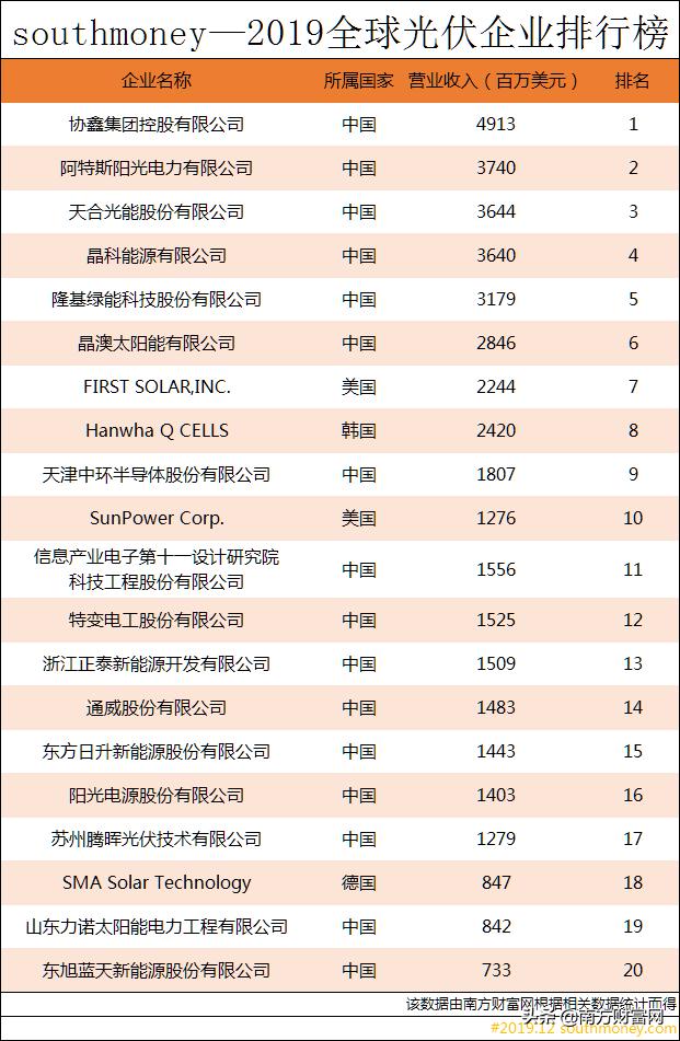 2019年全球光伏企业排行榜丨中国16家公司上榜,美国仅2家