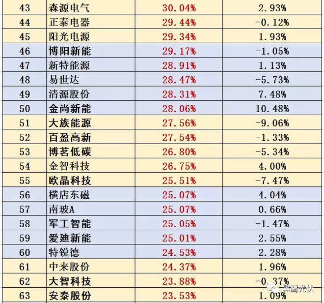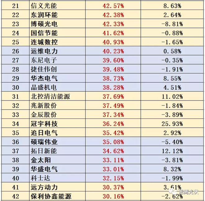 中国光伏企业排名 注:表格数据来源于光伏概念上市公司2018年半年度净利润和净利润增长率以及2018年1月1日至2018年6月30日区间的涨跌幅和20