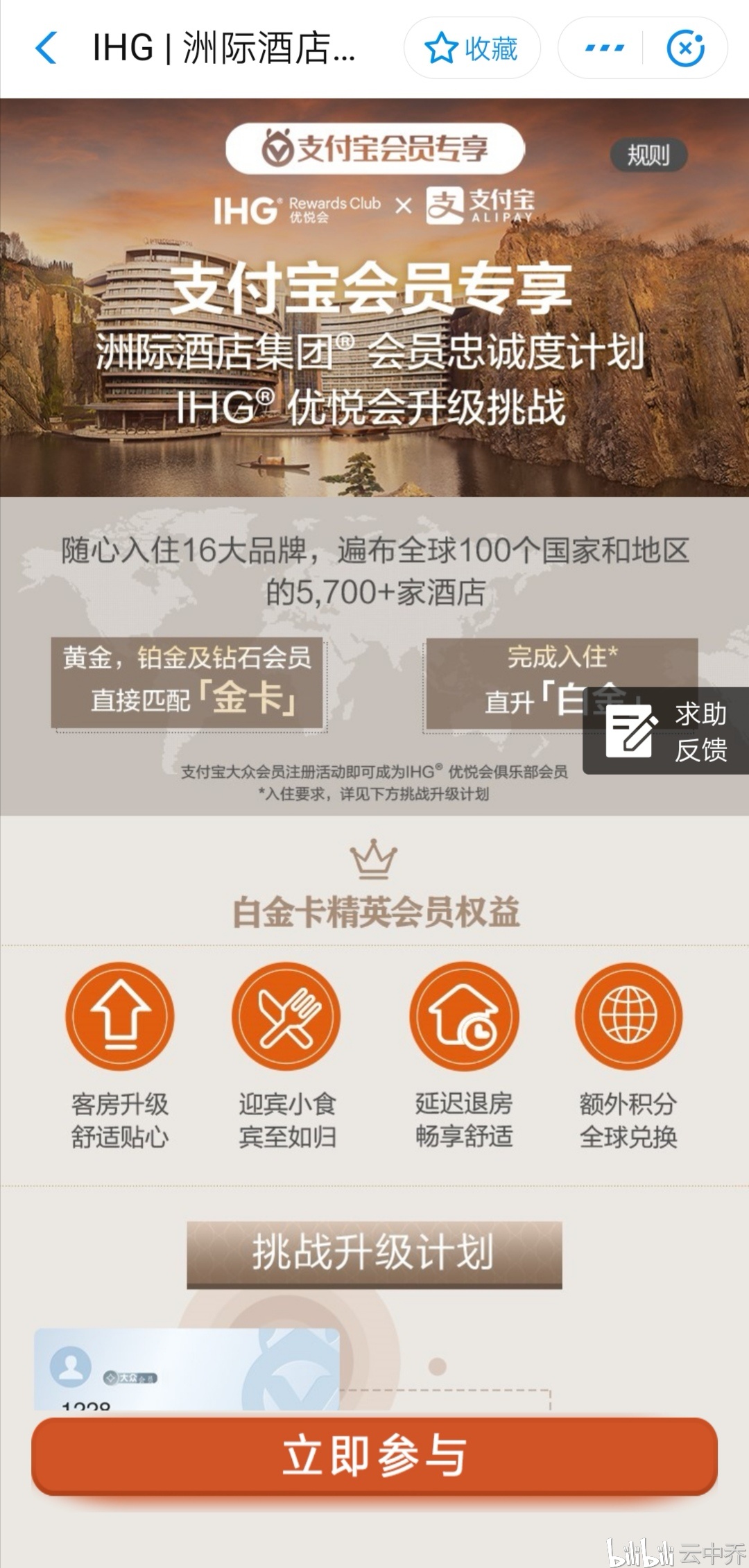 支付宝黄金以上会员,可直升IHG洲际酒店