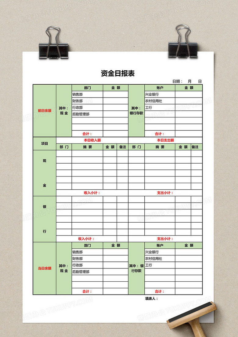 资金日报表模板Excel模板原创作品是设计师qy7616上传到我图网,本作品为版权excel表格模板,图片编号12273501,上传时间为2014-07-11 18:24:11,表