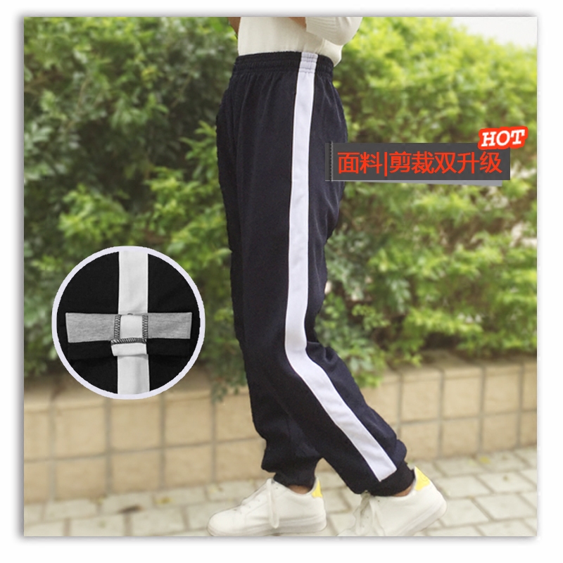校裤黑色白杠尺寸|校裤黑色白杠穿搭|校裤