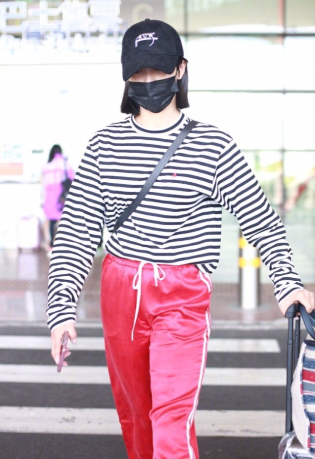 最近火了校裤梗,条纹上衣搭配校裤,潮