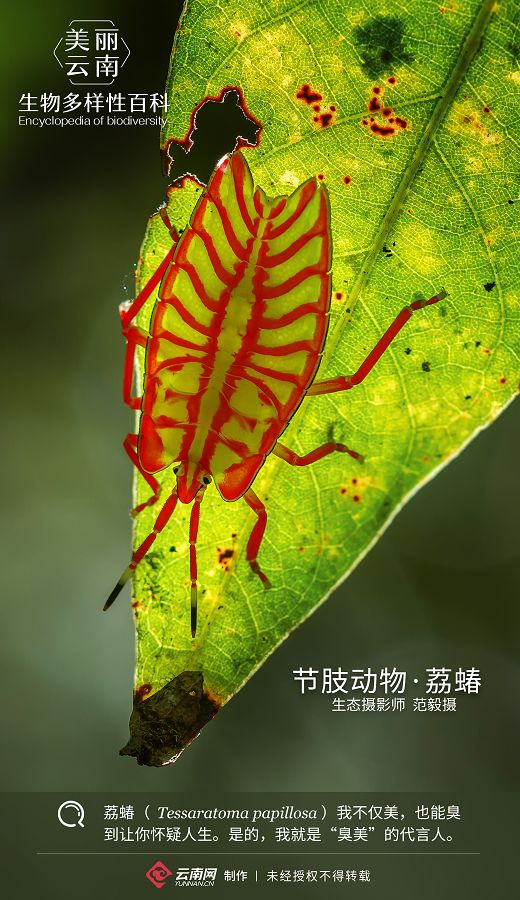 简介:名称:荔蝽拉丁名:Tessaratoma papillosa英文名:Lychee stinkbug属半翅目 Hemiptera 蝽科 Pentatomidae。 是