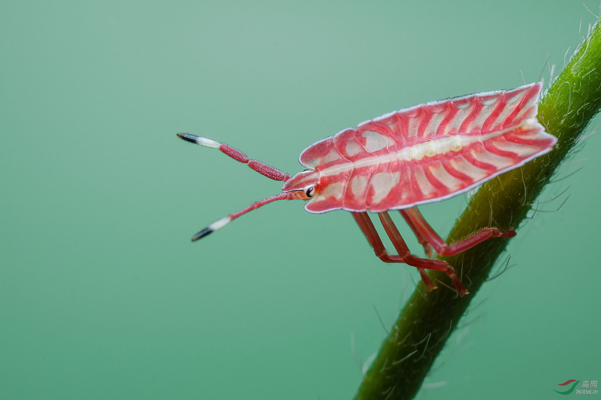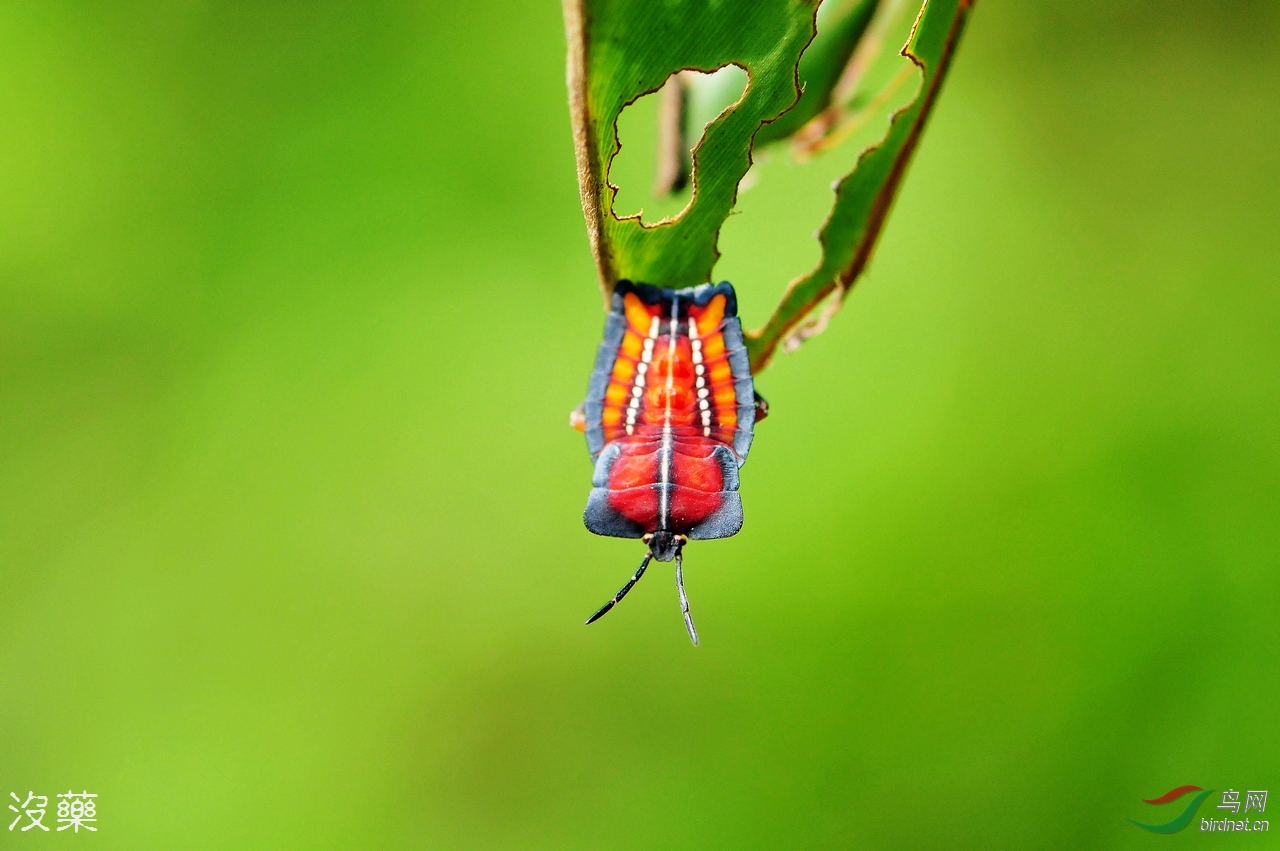 2016年4月摄于贵州芭沙。经“凡人老张”摄友帮助识别为荔蝽若虫。查百度:荔蝽成虫体长21-31毫米,宽11-17毫米。呈粉红色至深红色。三龄若虫体长10-12毫米。体表有臭