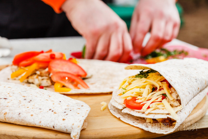 厨师制作卷饼