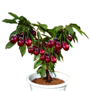 盆栽樱桃 樱桃是异花传粉的植物,所以在品种的选择上要注意搭配一下,最好就是在一个花盆上栽种3个品种的樱桃。而且要选择果大、色泽艳丽、连