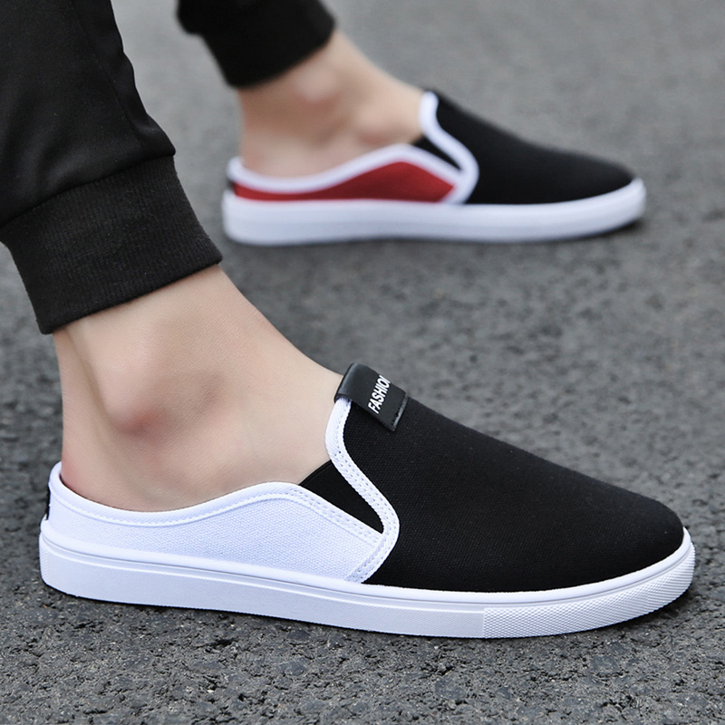 韩版休闲帆布半拖鞋男夏季鞋子男透气布鞋