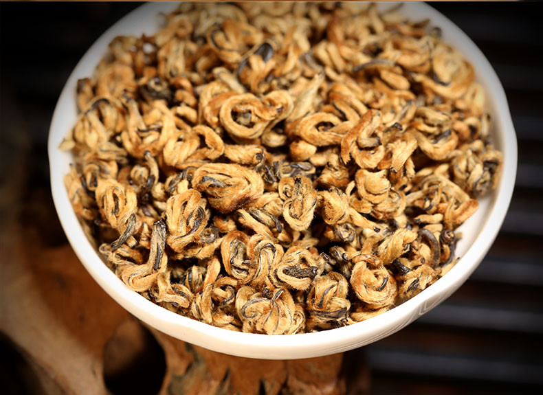 滇红金螺是人们采集当地野 树的新鲜茶叶精加工炒制后得到了精品茶叶,这种茶叶茶芽细嫩,茶汤金黄,而且滋味醇厚,回甘十分明显,滇红金螺不单滋