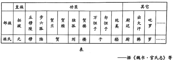 (见下表)。规定正员郎以上的高官须由鲜卑
