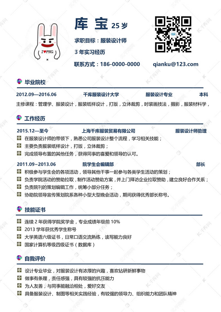 简约经典服装设计师求职简历二维码简历海报下载