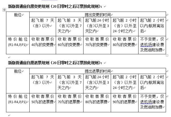 [最佳答案] 头等舱、经济舱全价票:收取票价的5%退票费; 9-8折:收取票价10%; 7.5-5.5折:收取票价的20%; 5-3.5折收取票价的50%; 3折:不得退票; 最低退票手续费不得低于50元人民币. 二、海南航空公司退票规定 头等舱、经济舱全价票:不论在起飞前或起飞后,按票面价收取5%的退票费; 9折:不论在起飞前或起飞后,按票面价收取5%的退票费; 8.5-8折:不论在起飞前或起飞后,按票面价收取10%的退票费; 7.5-5.5折:不论在起飞前或起飞后,按票面价收取20%的退票费; 5-4折:不论在起飞前或起飞后,按票面价收取50%的退票费; 三、南方航空公司退票规定 头等舱、经济舱全价票:免费退票; 9-7折:收取10%退票费; 6.5-5折:收取20%退票费; 4.5-4折:收取50%退票费; 四、深圳航空公司退票规定 头等、公务舱及经济舱8折(含)以上客票:收取票面价格5%退票手续费。 7-6折:收取票面价格10%退票手续费。 6-4折经济舱:收取票面价格30%退票手续费。