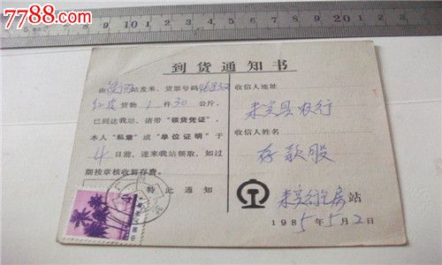 到货通知书-广西来宾戳,明信片\/邮资片,贴票明信片,八十年代(20世纪),其他类型明信片,其他形式片,实寄片,单片式,广西,单张,se23312489,零售,七七八八明信片收藏