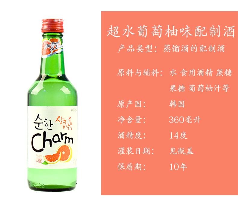 韩国烧酒初饮初乐柚子味桃子苹果桃子水果