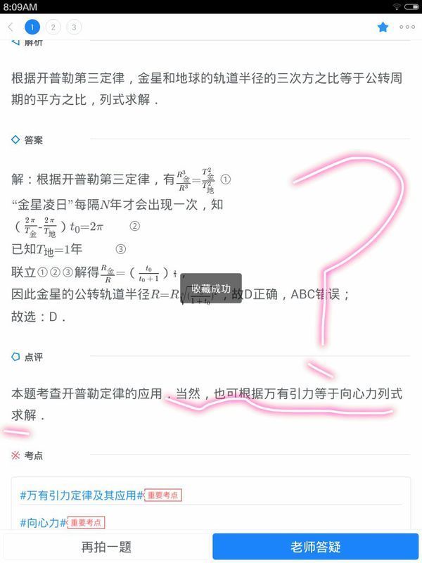 高中物理,这题不用开普勒定律,用万有引力等于向心力公式怎么写?