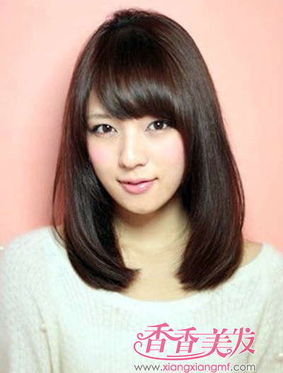 10款日系瘦脸发型拯救圆脸:较长齐刘海_