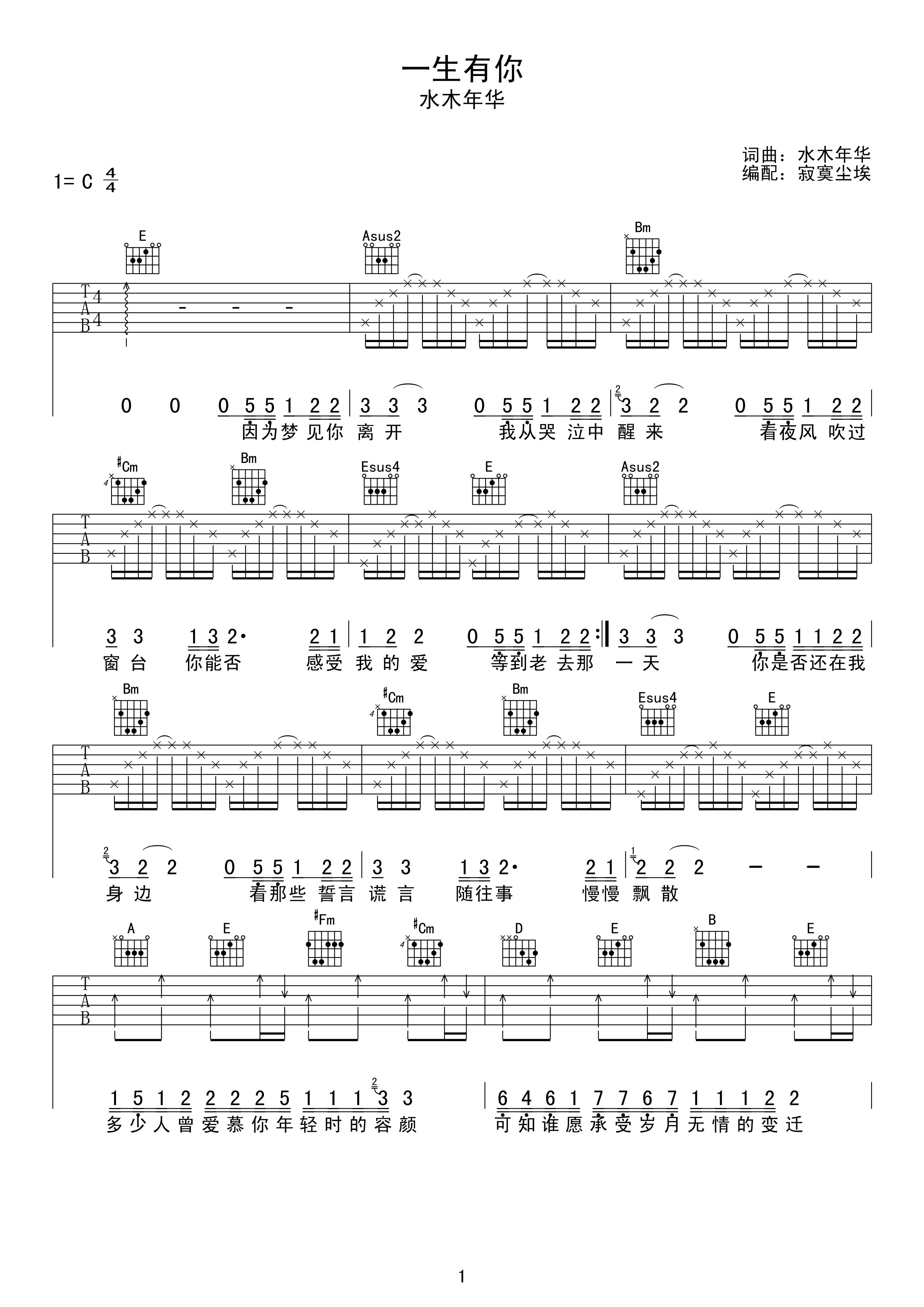 一生有你吉他谱新手版|一生有你吉他谱原版