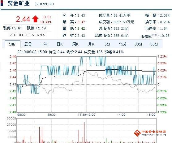 今日紫金矿业股票行情(2013年08月08日)