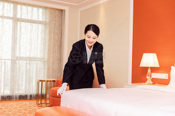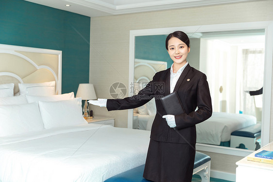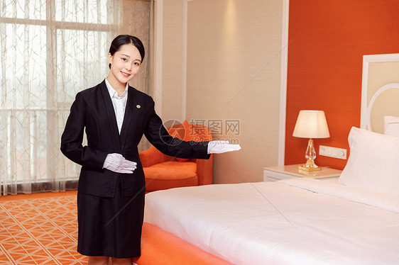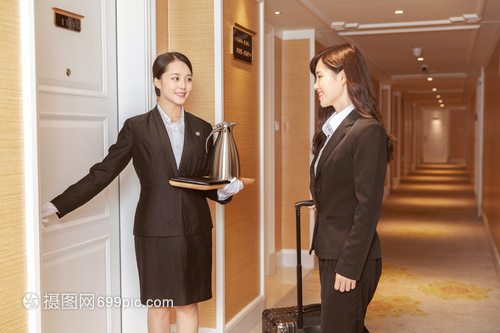 入住星级酒店-为住酒店的女客人端酒的老管家